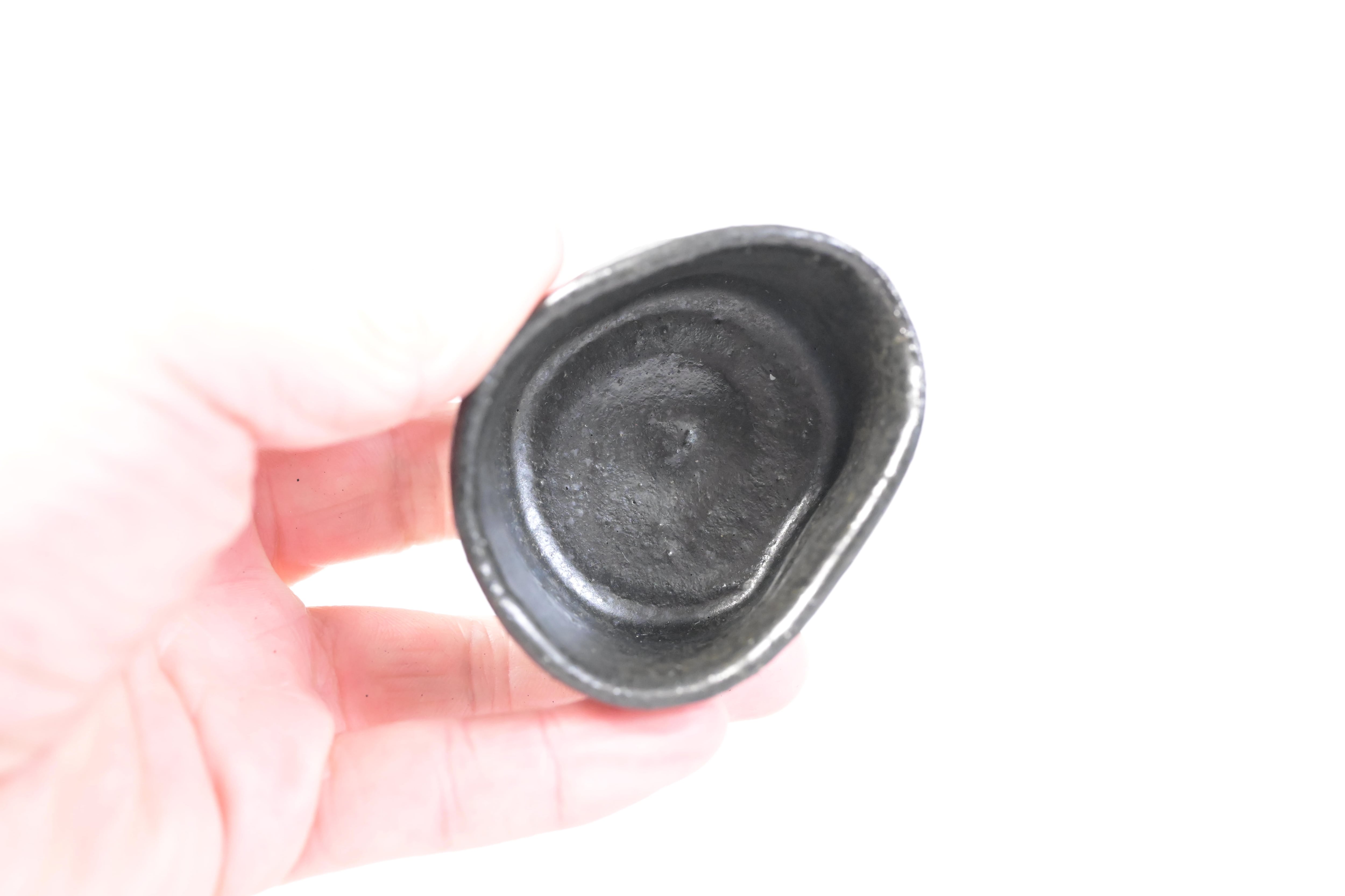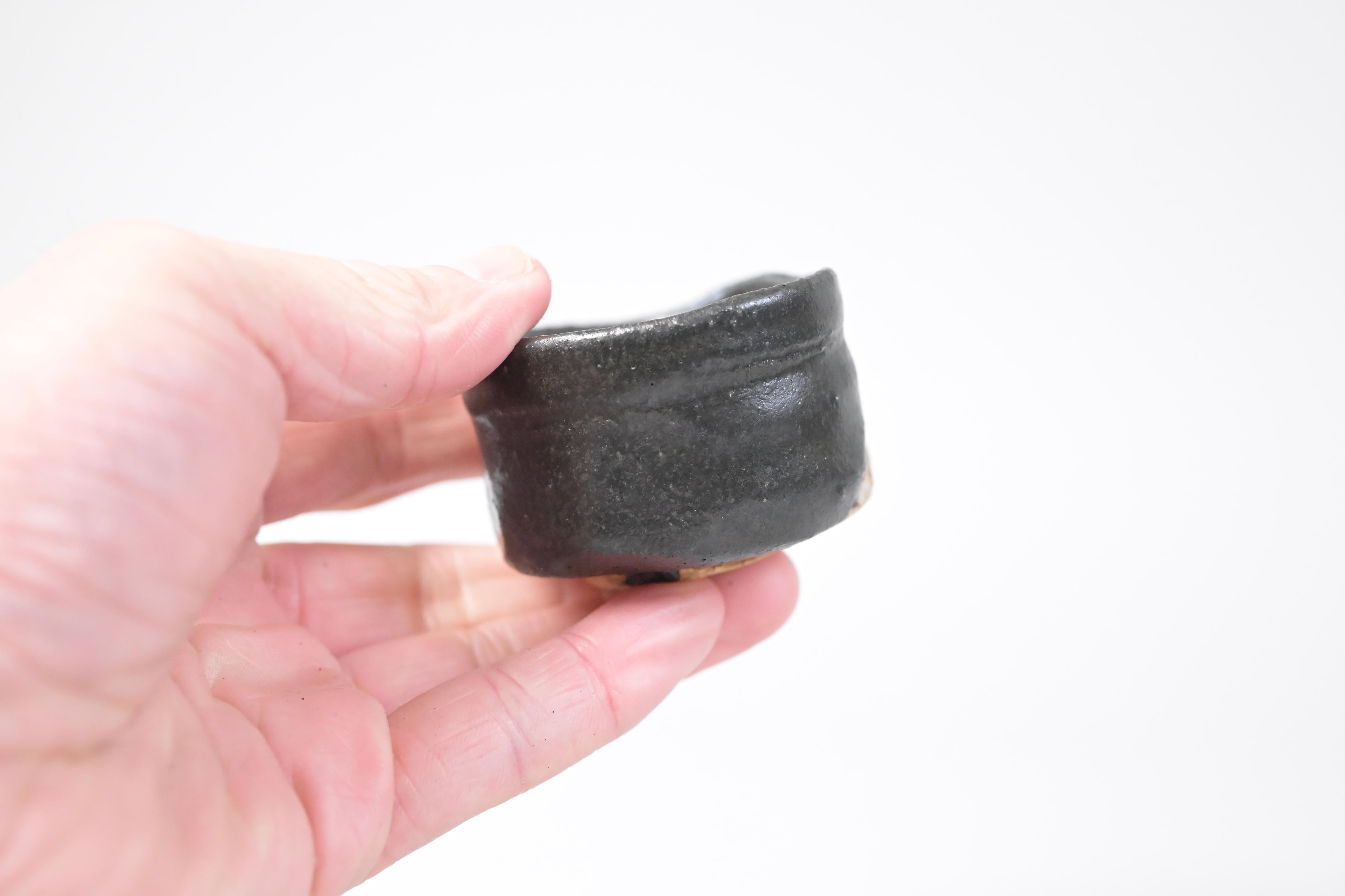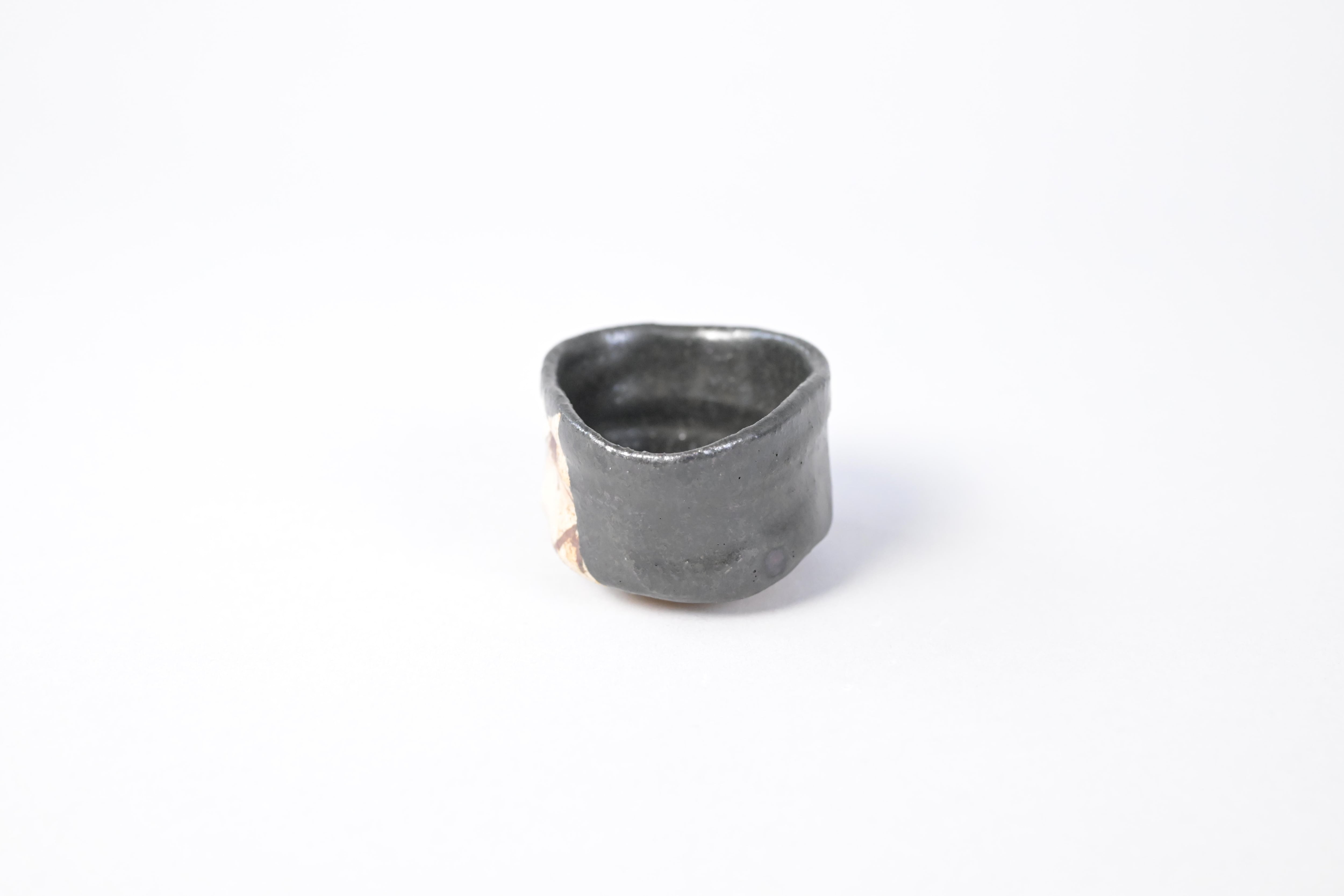 須賀保中さんが焼く黒織部のぐい呑。