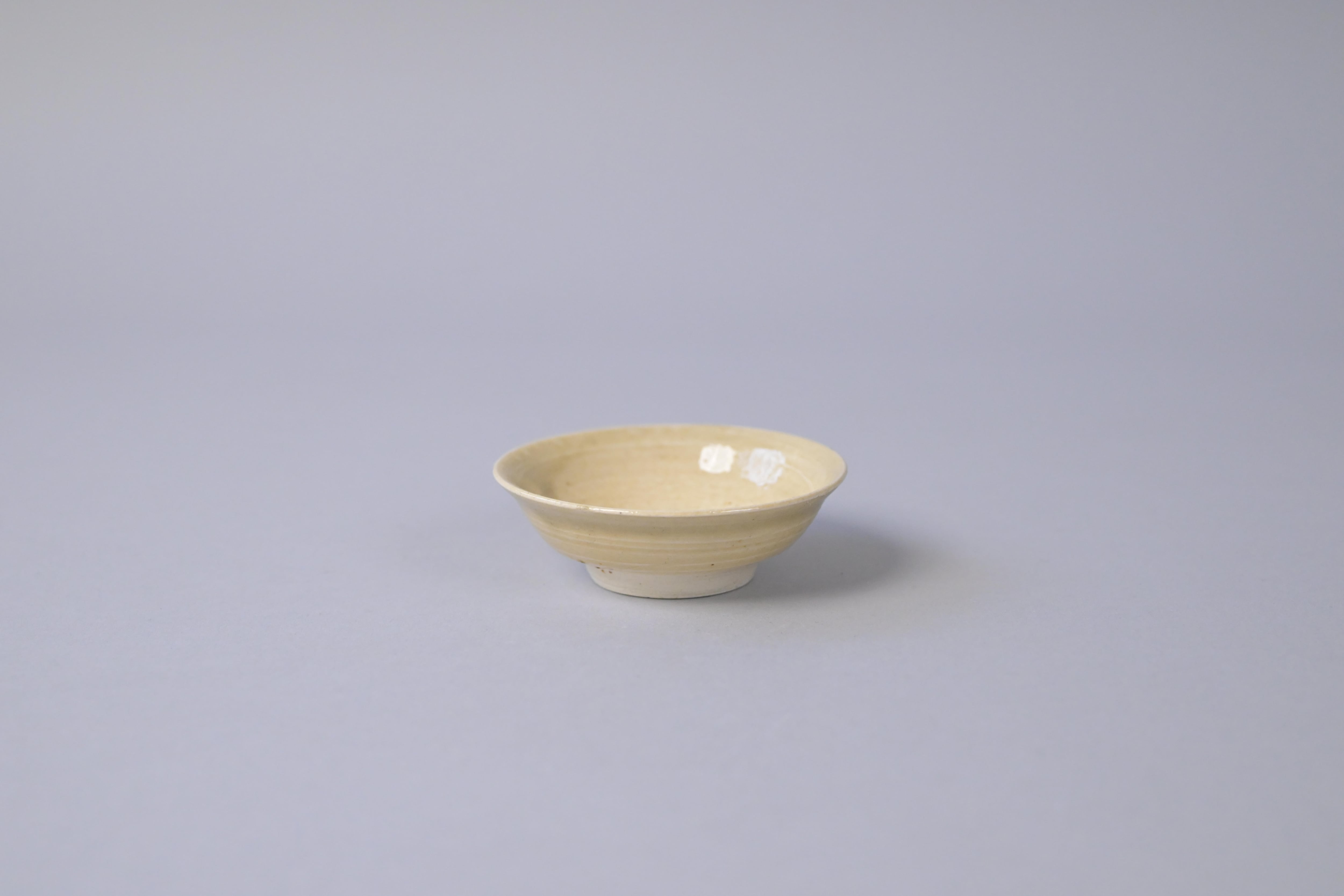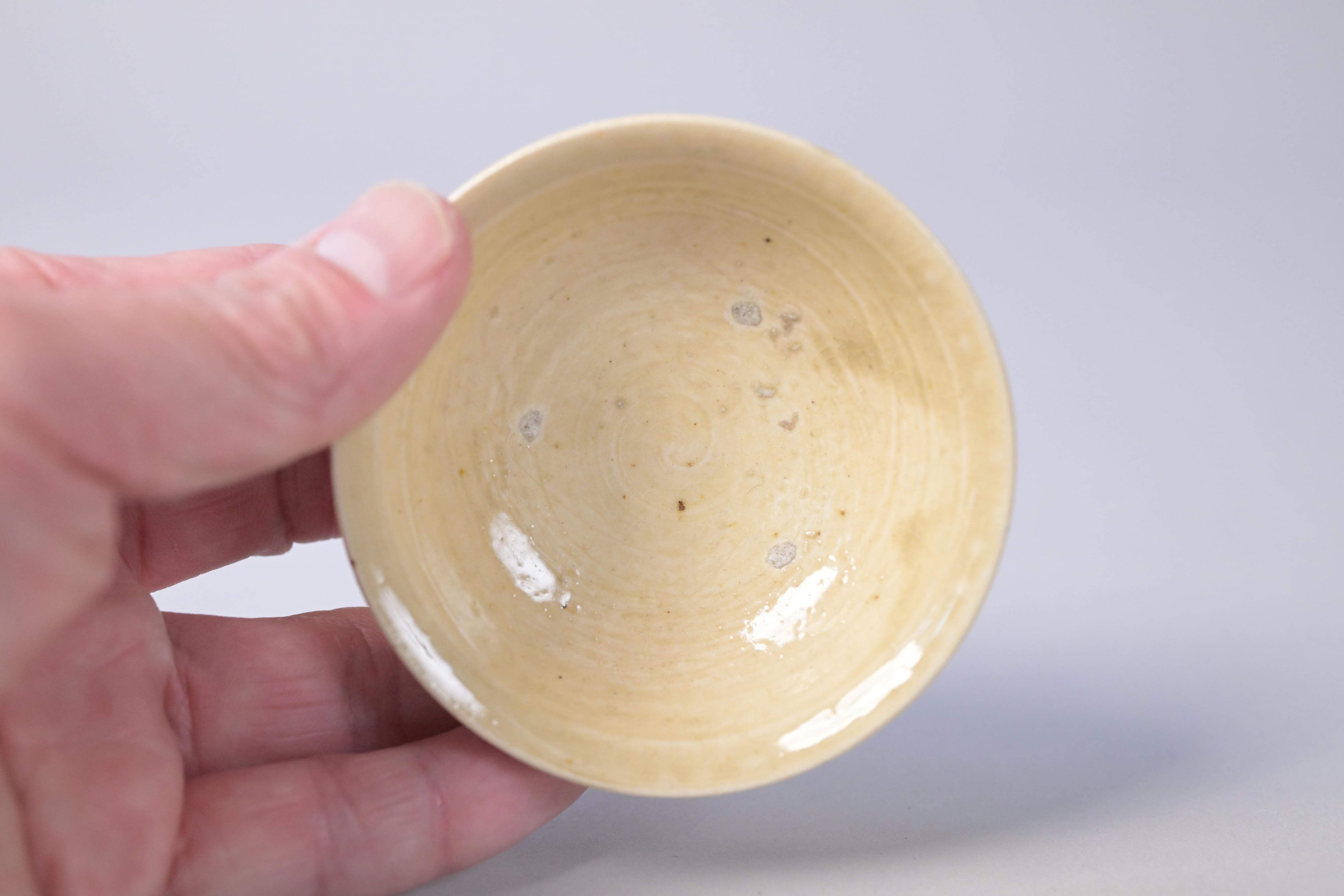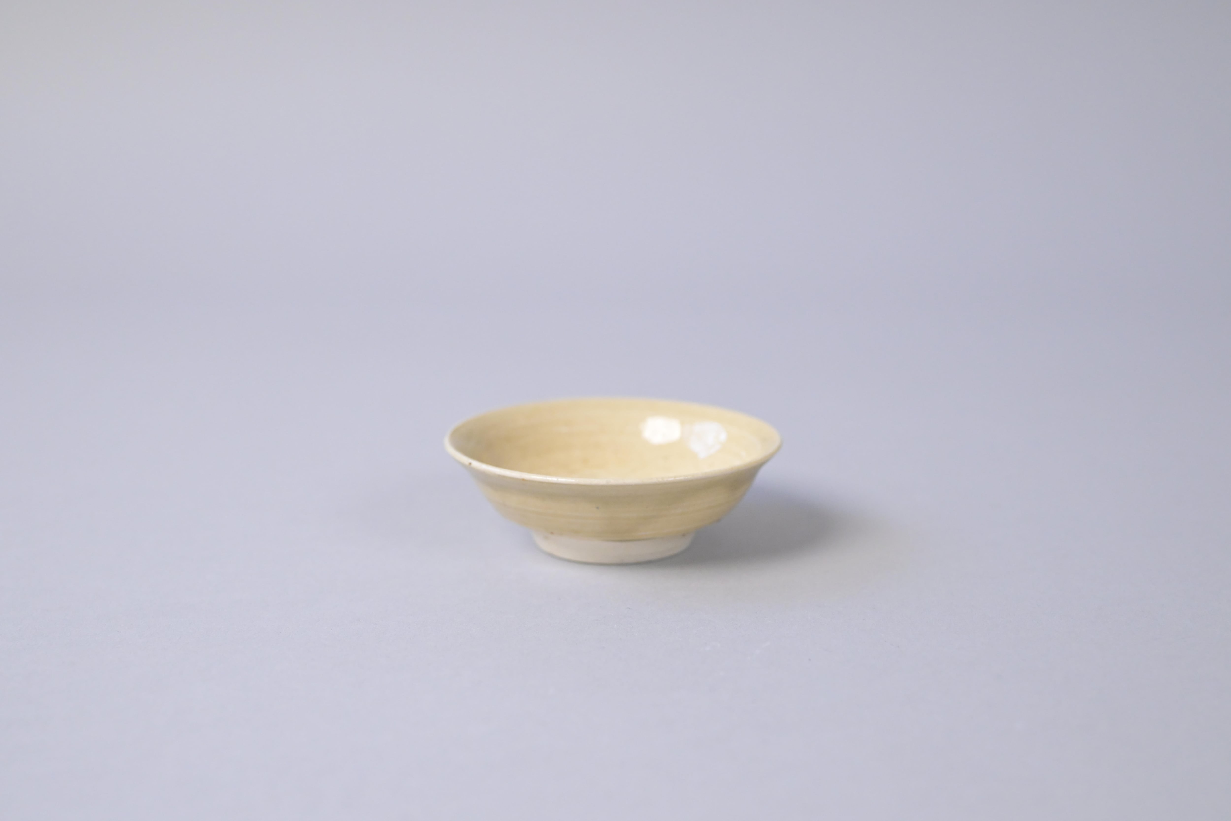 柔らかな黄味を帯びた釉調に、ろくろ目が静かに残る山茶碗の盃。