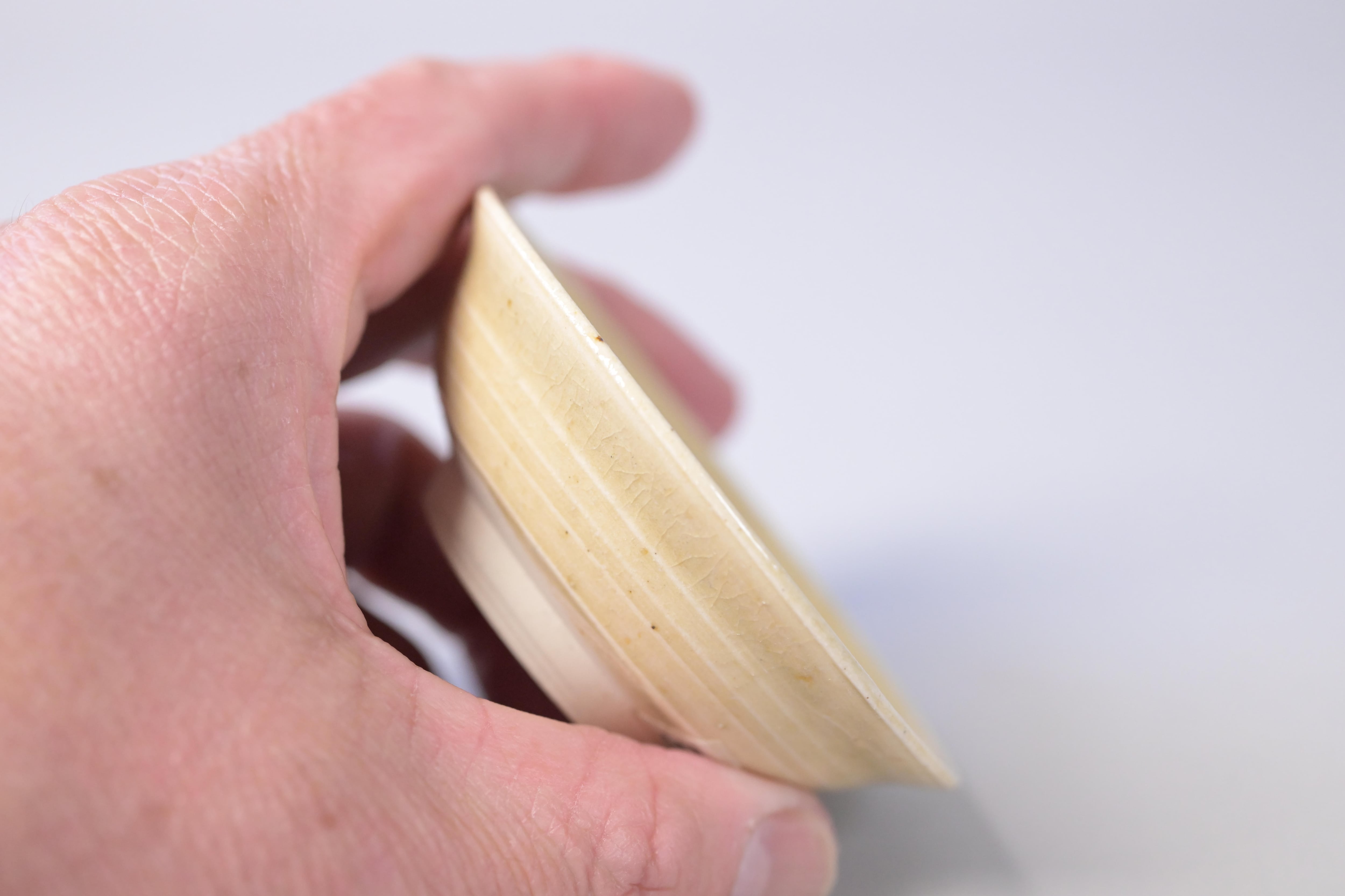 口縁は薄く、酒を含むと自然に口へ流れ、